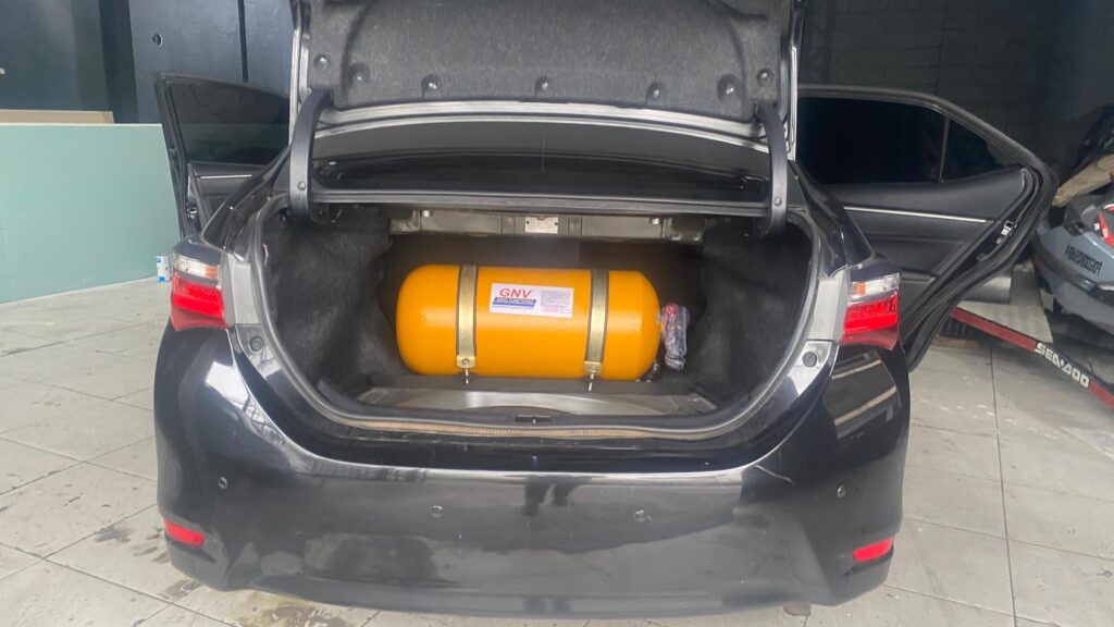 Confira as imagens do Kit com 1 cilindro 15m³ instalado no porta-malas do Corolla 2.0 2018/2019, instalado pela São Caetano GNV.